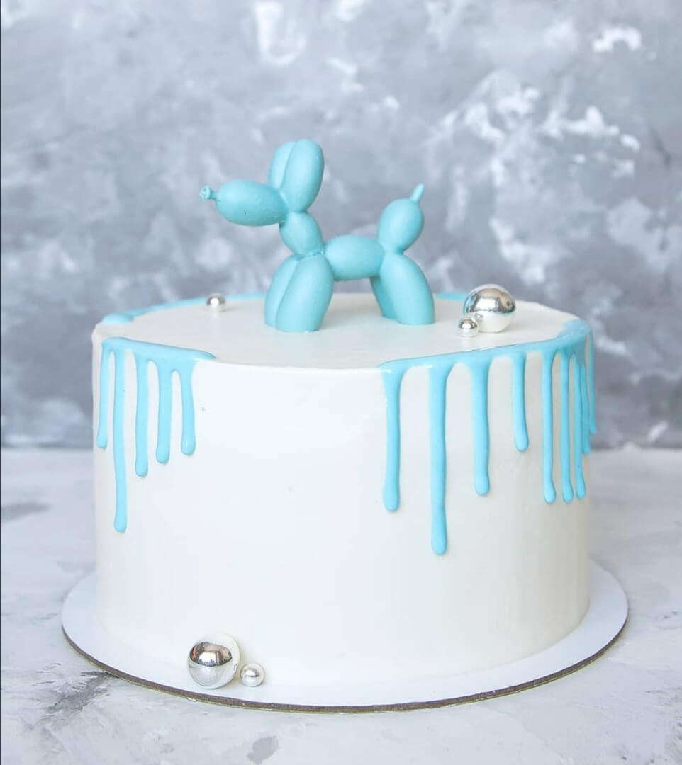 Сладкая "надувная" собака минималистично, но стильно украсит поздравительный тортик для вашего малыша